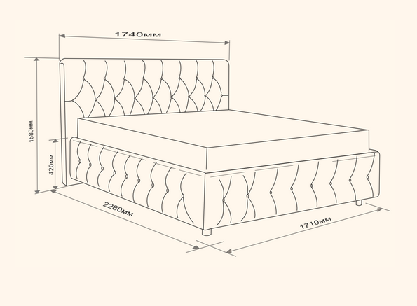 Двухспальная кровать с велюровым изголовьем с высотой от пола 1110 мм. создаст уютную атмосферу. Высота от пола до верха царг -420 мм. Просвет над полом 70мм/120 мм.(Высота деревянных опор100мм/150мм.) Комфортно для уборки, в том числе для робота-пылесоса.Мощные царги высотой 300 мм / 350 мм гарантируют максимальную устойчивость, отсутствие скрипов и долговечность даже при активной эксплуатации. Модель с удобным подъемным механизмом поможет освободить пространство! Разработана для скрытого хранения постельного белья, сезонных вещей. Изготовим в любом цвете и размере :для подбора обратитесь к менеджерам.